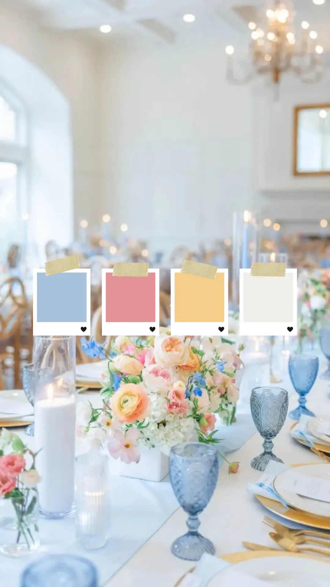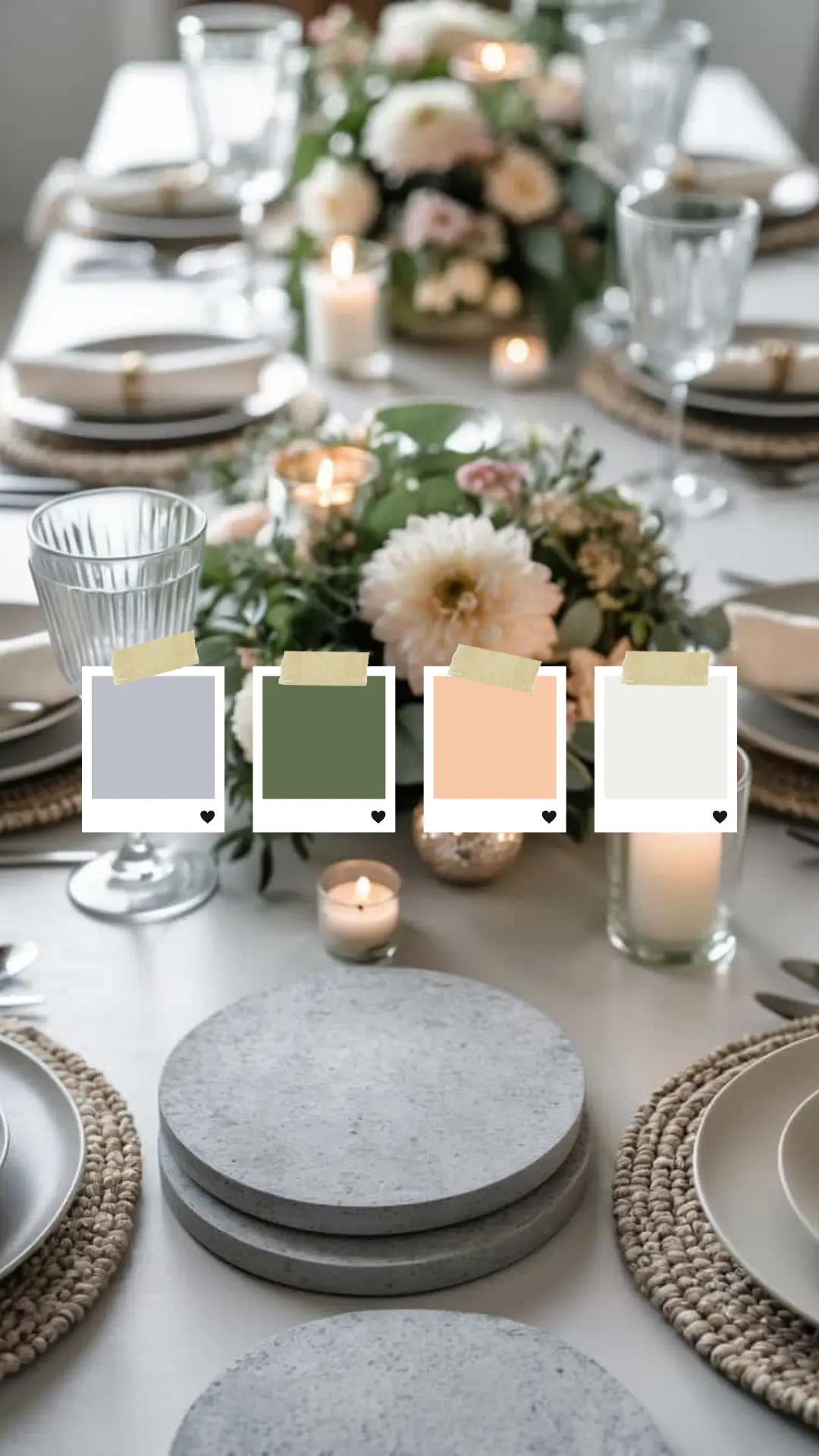 La force de cette palette réside dans son équilibre. Les couleurs pastel apportent de la nuance et du relief, tandis que la base claire structure l’espace et met en valeur chaque détail. Les fleurs semblent plus lumineuses, la verrerie capte la lumière, la table respire.