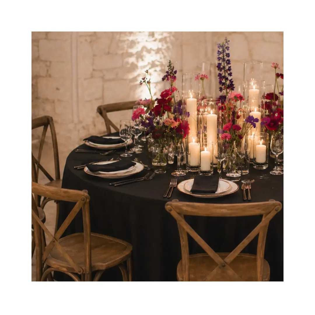 La nappe ronde noire Karen transforme immédiatement la perception d’une table. Elle crée une base visuelle forte, qui permet de structurer l’espace et de mettre en valeur chaque élément de décoration.
