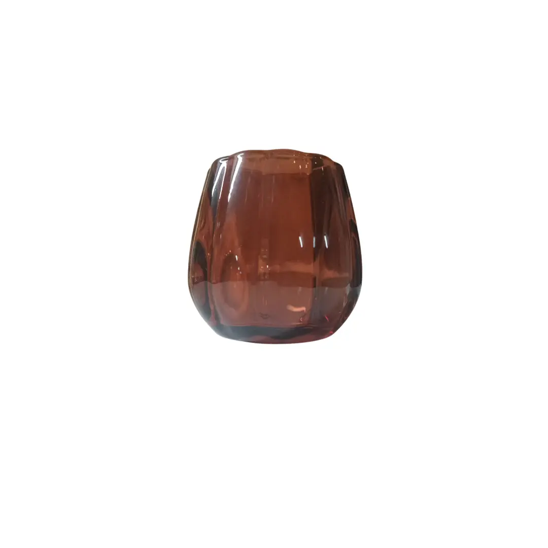 Photophore en verre épais rouge foncé, idéal pour apporter profondeur et intensité à votre décoration de mariage en Normandie.