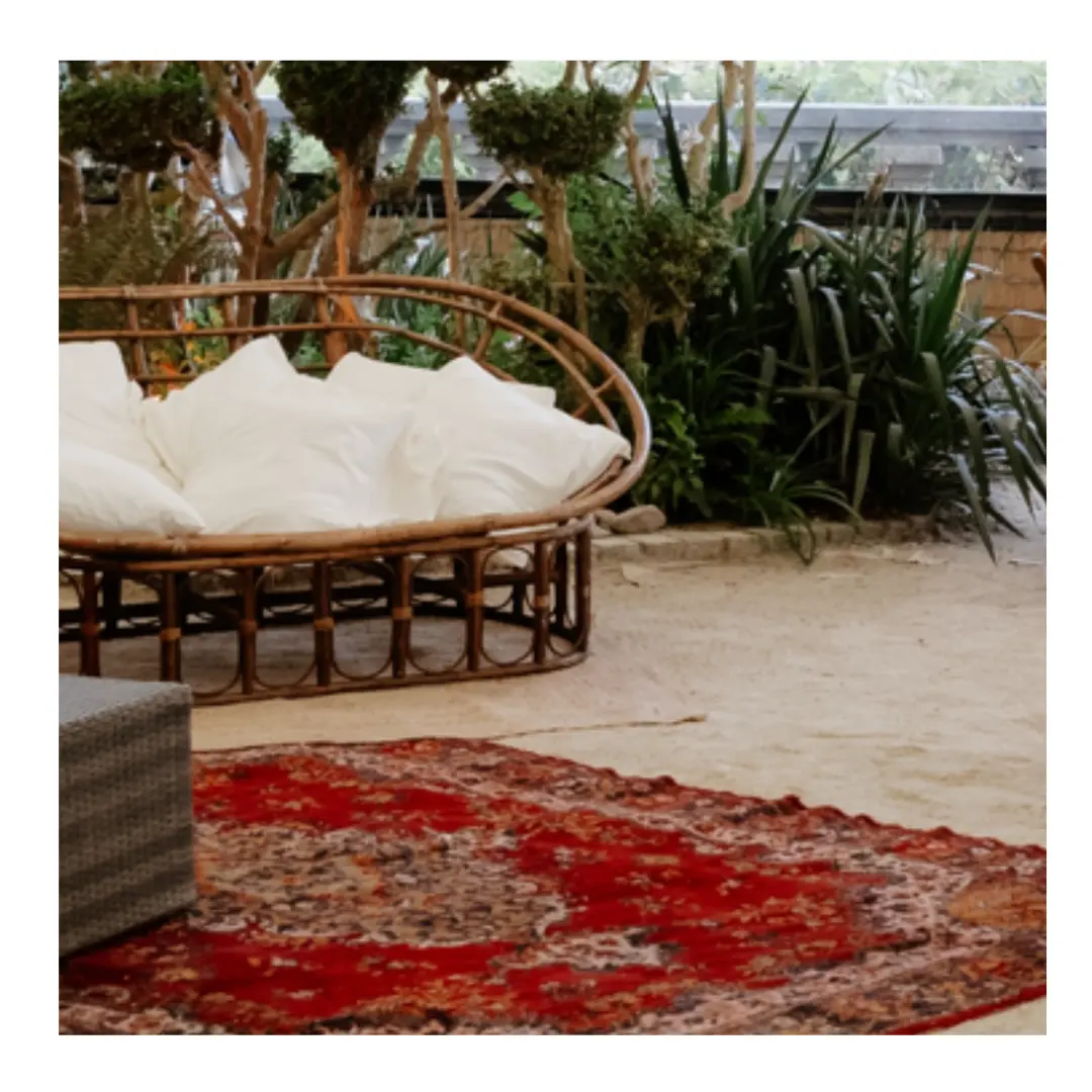 Ce grand tapis est idéal sous un espace lounge complet (canapé, fauteuils, table basse), pour ancrer une table d’honneur ou pour créer un coin photo structuré. Il fonctionne particulièrement bien dans une ambiance bohème chic, rétro ou chaleureuse.