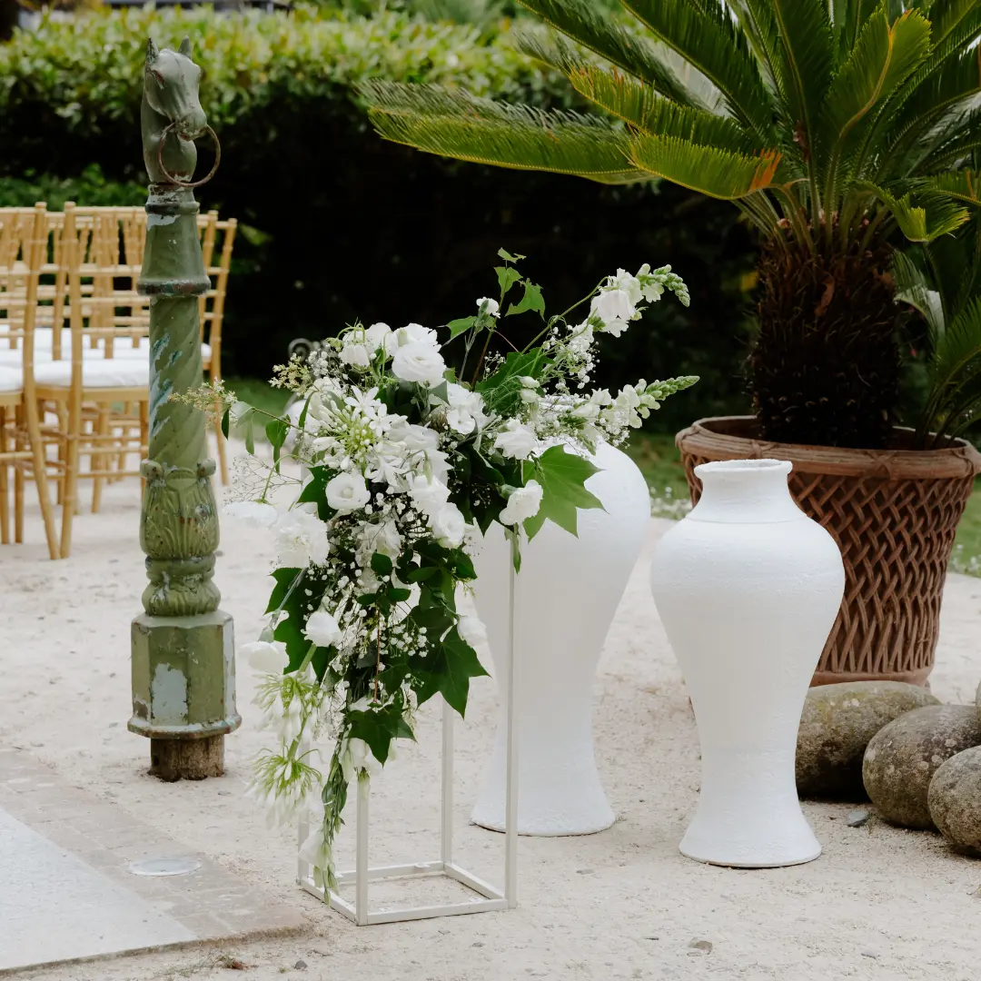 Travaillez la hauteur et la respiration visuelle. Avec ses 55 cm, Floriane est parfait pour donner du volume sans surcharger l’espace. Il est particulièrement adapté aux cérémonies laïques en extérieur, aux terrasses ou aux salles lumineuses.